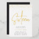 Celebre su cumpleaños con estas invitaciones de la fiesta de cumpleaños número 16 de la moda, que incluyen "dieciséis" en letras de guión esbozadas a mano de Relieve metalizado oro moderno y coronadas con confetti. Personalice con los detalles de su fiesta debajo. Una elección inolvidable y de lujo para fabulosas celebraciones dulces de dieciséis años.