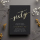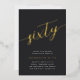 Celebra su cumpleaños con estas invitaciones de cumpleaños número 60 de la moda, que incluyen "sesenta" en letras de guiones dibujadas a mano en Relieve metalizado oro moderno. Personalice con los detalles de su fiesta debajo. Una elección de lujo inolvidable para fabulosas celebraciones de cumpleaños número 60.