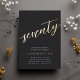 Celebra su cumpleaños con estas invitaciones de cumpleaños número 70 de la moda, que incluyen "setenta" en letras de guiones dibujadas a mano de Relieve metalizado oro moderno. Personalice con los detalles de su fiesta debajo. Una elección de lujo inolvidable para fabulosas celebraciones de cumpleaños 70.