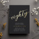 Celebra su cumpleaños con estas invitaciones de cumpleaños número 80 de la moda, que incluyen "ochenta" en letras de guión esbozadas a mano de Relieve metalizado oro moderno. Personalice con los detalles de su fiesta debajo. Una elección de lujo inolvidable para fabulosas celebraciones de cumpleaños número 80.