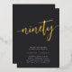 Celebra su cumpleaños con estas invitaciones de cumpleaños número 90 de la moda, que incluyen "noventa" en letras de guión esbozadas a mano de Relieve metalizado oro moderno. Personalice con los detalles de su fiesta debajo. Una elección de lujo inolvidable para fabulosas celebraciones de cumpleaños 90.