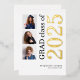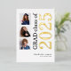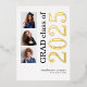 Graduación 2025 3 Fotos Relieve metalizado de oro real. Un diseño moderno con tipografía elegante y tres fotos para anunciar la noticia de tu graduación con 2025 en Relieve metalizado real en oro junto al resto del texto en negro. Fácilmente personalizable con el nombre y el mensaje de tu graduado en la escuela secundaria, y reemplace las fotos de muestra por las suyas.