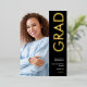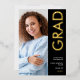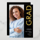 Modern Grad 2025 Foto Invitación de Relieve metalizado Real de Oro Negro. La clase del Relieve metalizado real en oro para la tipografía rotada, Grad y el año, con el resto del texto en blanco incluyendo su mensaje en la parte posterior sobre un fondo negro. Reemplace las fotos de cada lado por sus dos favoritos.
