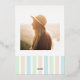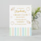 Grad club beach party with cabana stripes in shades of mint green, coastal blue and sandy brown with seashells. Photo template via Pixabay licensed under CC0 and must be replaced with your own photo.