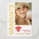 Invitación Con Relieve Metalizado Grad Glam Red Cap Stylish Graduate Photo