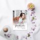 Clase de la invitación de Graduación de Guión Multifoto 2025. Añade tus fotos al frente y una al revés a esta elegante invitación de guión de graduación de fotos minimalistas. Con tipografía moderna y Relieve metalizado dorado, texto con letras a mano "graduado". Cambie completamente la tarjeta haciendo clic en el botón "Personalizar".