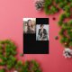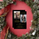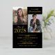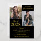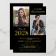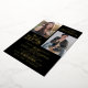 Invitaciones a fiestas de graduación conjuntas de Relieve metalizado real con un elegante fondo negro que se puede cambiar a cualquier color, fotos de los dos graduados y un elegante patrón de doble celebración de Relieve metalizado de oro que es fácil de personalizar. NOTA: el Relieve metalizado puede cambiarse a oro plateado o rosa.