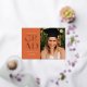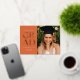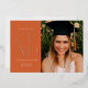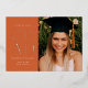 Celebra tu graduación con estilo con esta moderna invitación de graduación e invitación. Presenta la palabra GRAD en un elegante sans serif presionado con Relieve metalizado en el frente sobre un fondo de terracota, junto con un espacio para una foto. La parte trasera de la invitación tiene espacio para una segunda foto así como para todos los detalles de tu fiesta de graduación.