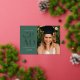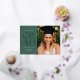 Celebra tu graduación con estilo con esta moderna invitación de graduación e invitación. Presenta la palabra GRAD en un elegante sans serif presionado con Relieve metalizado en el frente sobre un fondo verde del bosque, junto con espacio para una foto. La parte trasera de la invitación tiene espacio para una segunda foto así como para todos los detalles de tu fiesta de graduación.