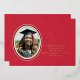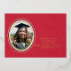 Esta tarjeta de agradecimiento por graduación incluye un Relieve metalizado dorado, oval en blanco y negro para resaltar el retrato del graduado. Un guión en negrita Gracias también en Relieve metalizado es simplemente elegante en la tarjeta roja de trino falso. Los detalles de la graduación aparecen en la parte delantera. La espalda es la misma ropa roja falsa.