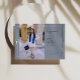 Una elegante invitación de foto de 2 en 1 graduación y fiesta de invitación. Con un fondo azul clásico con toques o un verdadero Relieve metalizado plateado estampado.