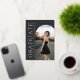 Esta tarjeta de anuncio de graduación con foto en gris carbón oscuro presenta una tipografía serifada atemporal combinada con un diseño editorial moderno para un aspecto rico y sofisticado. La letra suave blanca y los acentos de lámina de oro rosa resaltan el nombre del graduado, el año de graduación y la escuela, al mismo tiempo que permiten que la foto principal siga siendo el punto focal. Totalmente personalizable, este diseño te permite personalizar todos los detalles del texto y subir tu propia imagen en la parte frontal. La parte posterior coordinada incluye un fondo de carbón vegetal coincidente con una plantilla de collage de cuatro fotos, perfecto para retratos adicionales de último año. Un anuncio de graduación refinado diseñado para aquellos que aman el diseño clásico en blanco y negro pero que quieren un cambio moderno a una paleta un poco más suave. © Kimbellished, LLC