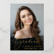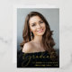 Elegante invitación de graduación con su foto favorita retratada en Relieve metalizado de oro con "Graduada" en un guión elegante y su nombre, colegio y año de clase. En el reverso, agregue una fotografía adicional y un mensaje personalizado.
