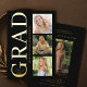 Invitación a graduación fotográfica de tipografía de Relieve metalizado dorado negro. Un diseño moderno de tipografía lateral con 4 fotos. ¡Celebra tu hito académico con esta invitación a graduación de personalizable! Ya sea que estés celebrando una graduación universitaria, un grado de secundaria o cualquier otro logro, esta invitación es perfecta para tu celebración. Con un diseño moderno y minimalista, esta plantilla editable le permite añadir sus fotos y personalizar los detalles de la invitación del fiesta de grado.