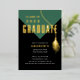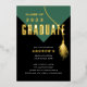 Moderna y audaz Clase de 2022 invitación a fiesta de graduación con una tapa de pato verde con una placa de Relieve metalizado dorado sobre un fondo negro. Visite nuestra tienda para ver este diseño en una variedad de colores escolares.