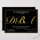 Invitación a una fiesta de graduación de DBA con Relieve metalizado dorado, texto blanco y fondo negro. Simplemente agrega tu información, agrega esta invitación a tu carrito y celebra este gran logro. Diseño de vacaciones de Relieve metalizado de la invitación para graduación DBA de Black Gold | ©Melissa Patton - Diseñador