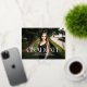 Celebra tu graduado de secundaria o universitario con esta elegante y sofisticada invitación de graduación, que incluye una foto horizontal de sangre completa enmarcada por un Relieve metalizado dorado ondulado. "Graduado" se muestra en negrita con letras blancas y hace una declaración sorprendente, mientras que el nombre del graduado, la escuela y el año de graduación agregan un toque personal. La parte trasera muestra una foto vertical con espacio para tu mensaje personalizado, lo que la convierte en la manera perfecta de compartir este logro especial con familiares y amigos.