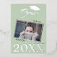 Moderno Graduado Verde 2 Invitación a Relieve metalizado plateado de Graduación Fotográfica. Tapa de graduación de Relieve metalizado plateado de moda, texto y detalles en la parte delantera. Añade tu foto y nombre al frente y detalles de la foto e invitación al revés.