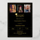 A modern and stylish Black and gold invitation for a graduation party. Add 3 photos. Decorated with a graduation cap. Personalize and add a name, and the details. Real gold foil text.