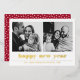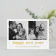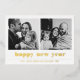 Magnífica tipografía gráfica contemporánea y mínima, feliz tarjeta de foto de Año Nuevo en verdadero Relieve metalizado. La parte posterior de la tarjeta presenta un toque de color de coordinación con un patrón de estrella de invierno. Tarjeta de lujo contemporánea para Navidades de moda o saludos de vacaciones!