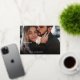 Anuncie su fecha boda con estas tipografías modernas y audaces, salven las tarjetas de fecha. El diseño presenta una foto horizontal o horizontal con un solo sangrado completo, con sus nombres superpuestos en letras de Relieve metalizado de oro rosa y unidos por una banda grande. Personalice la fecha y la ubicación de su boda y agregue detalles adicionales a la parte posterior, si lo desea.