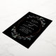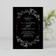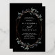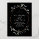 Esta elegante y moderna invitación a la boda tiene una forma geométrica de Relieve metalizado dorado subió, rodeada de hermosas ramas verdes, sobre un fondo negro y oscuro.
