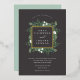 Nuestra invitación a la boda de Greenhouse rodea tus nombres con un elegante marco cuadrado de frondosos follajes verdes, hojas botánicas y pequeñas flores blancas con guarnecido de Relieve metalizado dorado. Personalice los detalles de su boda con letras blancas clásicas con un acento de guión de caligrafía de moda. Un rico fondo marrón humeante con tonalidad de tierra proporciona un impresionante telón de fondo para los detalles de la ceremonia en blanco fresco. Una hermosa elección para bodas de verano por la noche, nupcias de otoño o otoño, o bodas de invierno nevadas.