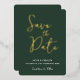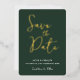 Guardar la fecha Tarjeta de boda minimalista en verde sage oscuro y dorado con relieve en lámina