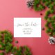 Tarjetas de guardar la fecha de boda con letra moderna simple. Para una personalización más avanzada de este diseño, por favor haga clic en el botón "Personalizar". También están disponibles artículos coincidentes y más opciones de color a petición.