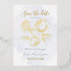 Invitación Con Relieve Metalizado GUARDAR LA FECHA | Rosa Dorada en Azul Polvorient
