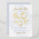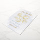 GUARDAR LA FECHA | Simple y elegante, salpicadura de acuarela en azul polvoriento destaca las rosas doradas con lámina de oro - texto minimalista simple combinado con caligrafía dorada. La elección de la comida es personalizable. El reverso es azul polvoriento. Esto es parte de una colección de suite de boda coordinada por la BarefootBride™