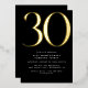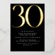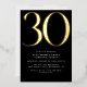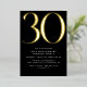 Invitaciones de 30 años de estilo moderno con un gran título "30" en Relieve metalizado metálico real. Los detalles del evento se imprimen a continuación en una letra blanca mate. Diseño unisexo con acentos dorados sobre un fondo negro contrastante. (Los colores de fondo se pueden cambiar utilizando la herramienta de diseño. También puede cambiar el tipo de Relieve metalizado metálico.)