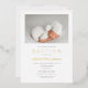 Invitación Con Relieve Metalizado Guión de oro Moderno Taupe Photo Boy Baptism