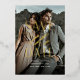 Una tarjeta de fecha moderna para guardar la tarjeta de fecha diseñada para acomodar tu foto de compromiso vertical de sangre completa favorita. "Guardar la fecha" aparece como un texto de Relieve metalizado dorado en el centro, con sus nombres, fecha de boda y ubicación de boda debajo. Personalice la parte posterior con detalles adicionales, como su sitio web boda.