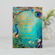 A la izquierda de la invitación, con sus plumas de cola hacia abajo, un único gran pavo real de color resplandeciente está enmarcado por un fondo azul verde azulado, azul rugoso y azul oceánico de marmol pálido adornado con plumas de pavo real y un marco ornamental Art Nouveau. Pequeños puntos reales de oro de Relieve metalizado brillan y brillan contra su rabo de oro falso y de plumas de rosette y sus características azules de pecho irrisorio irradian luz. A la derecha se encuentran las plantillas de Relieve metalizado real de oro y el conjunto es de lujo sofisticado y de moda de gama alta. La parte posterior tiene el mismo diseño gráfico con una sola plantilla para una redacción adicional. Si no se requiere información adicional, basta con aclarar la redacción. Por favor, tenga en cuenta que la plantilla trasera no es Relieve metalizado. Es ideal para un boda de "temática del pavo real", una ducha de novia, un compromiso, un aniversario o una ducha de parejas.