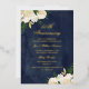 Invitación Con Relieve Metalizado HOJA DE ORO Azul marino Floral 50 Aniversario