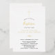 Este mínimo Relieve metalizado de oro de hoja de 2 o 3 personas la invitación al bautismo es perfecta para un elegante bautismo de bebé. El diseño presenta una sencilla silueta verde en un lujoso Relieve metalizado dorado prensado de estilo minimalista clásico.