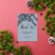 Diseño simple y moderno dibujado a mano con hojas de hoja perenne con fondo y texto personalizables. Personaliza la plantilla con los detalles de tu boda deseada