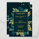 Invitación Con Relieve Metalizado Hojas doradas verde profundo
