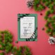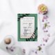 Tarjeta de Guardar La Fecha hermosa y elegante para tu día especial. Con efectos de foil real especiales; puede ser Dorado, Plateado o Rosa Dorado. Fondo verde.