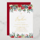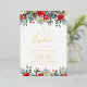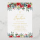 Invite a su familia y amigos a su evento con esta invitación al bautismo prensado con Relieve metalizado dorado. Cuenta con guirnaldas acuáticas de rosas rojas, poinsettias y muros de invierno con pinecones y acentos verdes. Personalice esta invitación floral de invierno añadiendo nombres, fechas, horas y otros detalles del evento. Esta invitación al bautismo de puntisetia es perfecta para eventos de invierno. Los elementos coincidentes están disponibles.