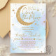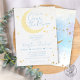 Bienvenido a tu pequeño y celebra a los padres de estar con esta invitación caprichosa que incluye luna de oro y estrellas y huellas de azul bebé. ¡Este es un diseño perfecto para las duchas para bebés y más!