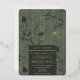 Esta invitación a la boda presenta dos tonos complementarios de verde equilibrado a través del fondo y un delicado patrón floral que añade un aire de sofisticación al diseño. Los bordes geométricos del Relieve metalizado dorado y la tipografía crean un contraste lujoso, mientras que el sutil ilustracion de la libélula realza la estética romántica e inspirada en la naturaleza. La invitación combina la elegancia moderna con elementos botánicos clásicos, lo que la convierte en el lugar perfecto para las parejas que buscan una temática boda refinada y audaz. Para realizar cambios avanzados, seleccione la opción "Hacer clic en más personalizar" en Personalizar esta plantilla.