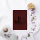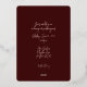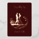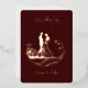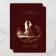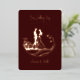 Una bella invitación a la boda simplista en un verdadero Relieve metalizado de oro rosa sobre un fondo borgoñoso. Imagen de una pareja de novias encerrada en círculo. Coincidencia Guardar la fecha y RSVP están disponibles