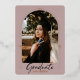 Una tarjeta de 2 en 1 para anunciar su graduación e invitar a celebrar la graduación de su hijo. Presenta un arco geométrico que enmarca la imagen, combinado con una tipografía de estilo moderno y cepillado sobre un polvoriento fondo morado con toques de Relieve metalizado de oro rosa real. En la parte de atrás rellena toda la información para tu celebración. Si quieres usar sólo el frente para anunciar al graduado. Vaya a "Editar este diseño" y elimine toda la información de la parte posterior. ¿Necesita ayuda o piezas adicionales? Por favor, contáctame usando el botón de contacto de abajo.