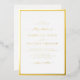 Simple Invitación al Relieve metalizado Boda de oro. Sencilla y elegante, esta hermosa invitación a la boda presenta un elegante borde y un elegante guión de caligrafía presionado en Relieve metalizado de oro real.