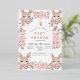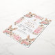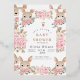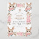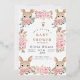 Esta invitación a la ducha para bebés muestra una mezcla encantadora de elegancia y luminosidad con su encantador diseño. El fondo blanco está enmarcado por cuatro deliciosos ilustraciones de conejo, cada uno asomando por detrás de un ramo de delicadas rosas rosas rosas y blancas, entremezcladas con hojas verdes y toques de follaje marrón. Los conejillos, con sus grandes ojos expresivos y sus largos oídos, le dan un toque divertido a las sofisticadas flores acuáticas. Esta invitación es especial porque combina a la perfección la inocencia y la alegría de dar la bienvenida a una nueva vida con la belleza de la naturaleza. La mezcla artística de suaves elementos florales y animales adorables lo convierten en el lugar perfecto para celebrar los preciosos momentos que conducen a la llegada del bebé. Capta la esencia del amor, la calidez y la anticipación, convirtiéndolo en un conservador ideal para los futuros padres y sus seres queridos. Ya sea para una ducha o para un anuncio de nacimiento, este diseño dejará una impresión duradera y creará recuerdos preciados.