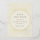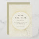 Un bonito y clásico salven la fecha con cremas y elementos de Relieve metalizado dorado. Ideal para una boda formal y elegante con un toque vintage.