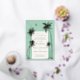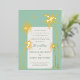 Esta invitación a bodas de boho sería perfecta para cualquiera que albergue una boda de destino tropical o para cualquiera que quiera una visita de verano para su invitación. El diseño se compone de palmeras de Relieve metalizado dorado brillantes con una luna y estrellas en un fondo verde menta con y el reverso de la invitación tiene un patrón de estrella de boho a juego.