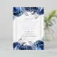 Invitación a una boda floral con acuarela de Guay en acentos de personalizable azul marino y plata a los detalles de tu evento.